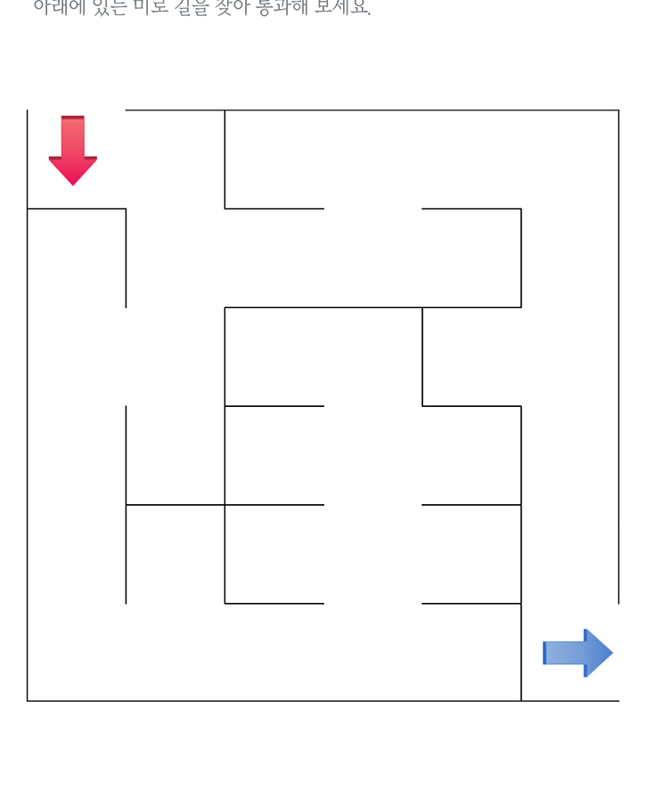 아래 그림을 보고 미로 길을 찾아 통과해 보세요