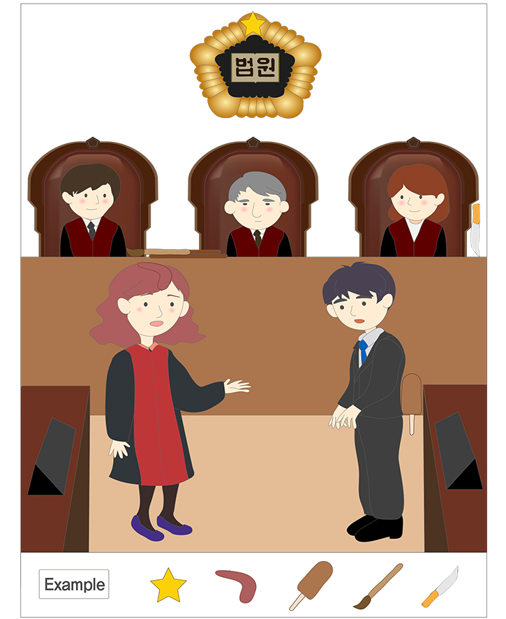 아래 그림(법원 재판)을 찾아보면 숨어있는 그림이 있습니다. 보기에 있는 그림을 찾아 표시하는 게임입니다. 아주 재밌는 게임이 될것입니다. 창의성 발달과,관찰,사고 발달에 도움이 됩니다. 선생님,부모님,친구와 함께 즐겁게 게임해보세요. 그림에 나와있는 주제에 대해 이야기 해보면서 다양한 연관 수업이 가능합니다.