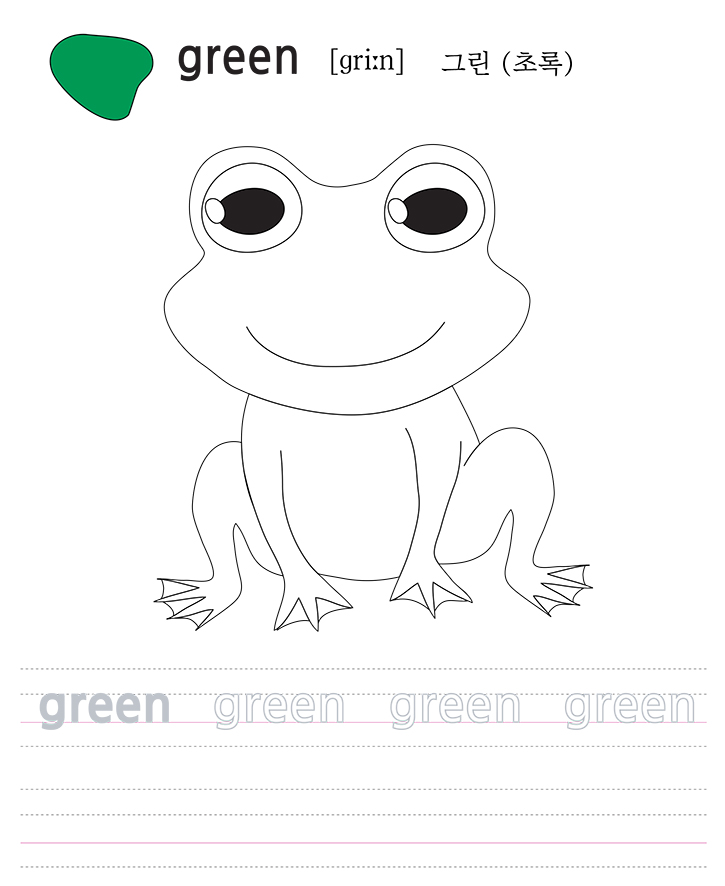 영어 (녹색)에 대해 배우고 소리내어 읽고 쓸 수 있습니다. 또한 관련 단어에 대해 이야기하고 색칠하십시오. 아이들은 색에 대해 배우고 창의력과 미세 근육 발달을 도울 수 있습니다. 교사와 학부모는 아이들의 생각과 의견을 듣고지도하도록 권장됩니다. 또한 그림과 주제에 대해 이야기하면서 프로젝트 등 다양한 관련 수업을 시도해보세요.