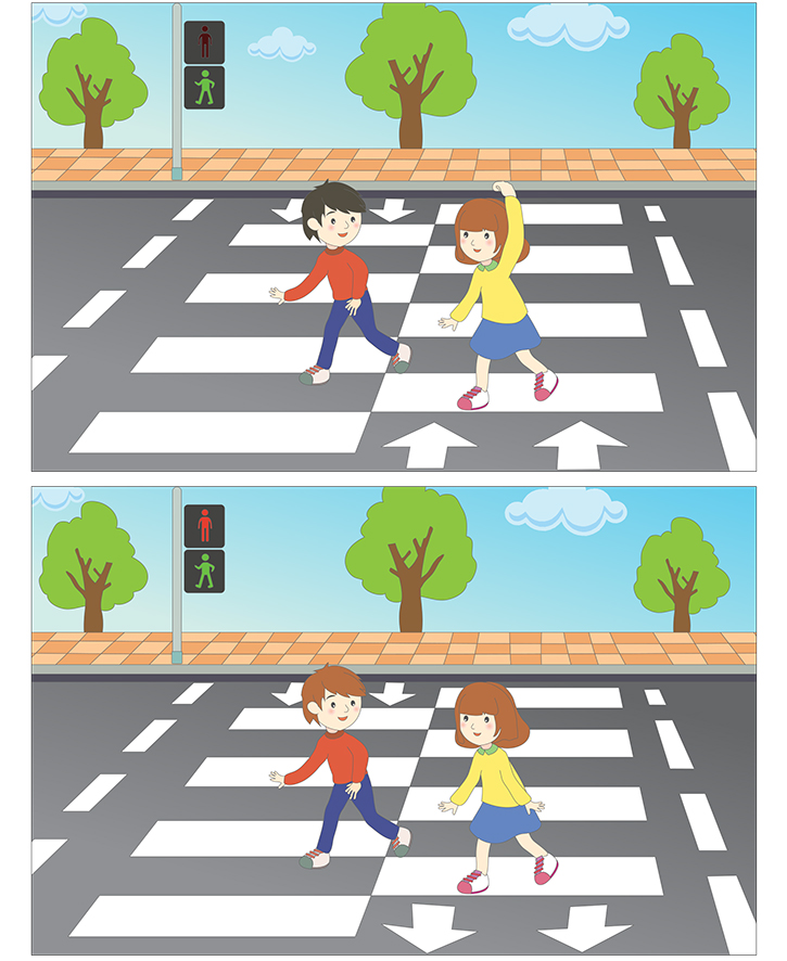 2개의 그림(건널목)을 비교해보면 서로 다른 부분이 있습니다. 서로 다른 부분 5곳을 찾아 표시하는 게임입니다. 모양,위치,색상등 모든 것을 고려해 보세요. 아주 재밌는 게임이 될것입니다. 창의성 발달과 분석,비교,사고 발달에 도움이 됩니다. 난의도에 따라 시간이 많이 걸릴수 있습니다. 선생님, 부모님, 친구와 함께 즐겁게 게임해보세요. 또한 그림에 나와 있는 주제에 대해 이야기 해보면서 다양한 연관수업이 가능합니다.
