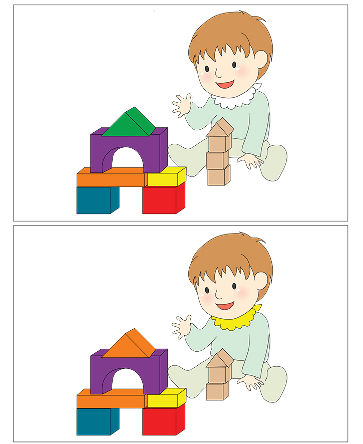 2개의 그림(블럭놀이)을 비교해보면 서로 다른 부분이 있습니다. 서로 다른 부분 3곳을 찾아 표시하는 게임입니다. 모양,위치,색상등 모든 것을 고려해 보세요. 아주 재밌는 게임이 될것입니다. 창의성 발달과 분석,비교,사고 발달에 도움이 됩니다. 난의도에 따라 시간이 많이 걸릴수 있습니다. 선생님, 부모님, 친구와 함께 즐겁게 게임해보세요. 또한 그림에 나와 있는 주제에 대해 이야기 해보면서 다양한 연관수업이 가능합니다.