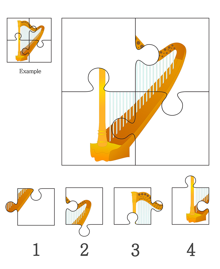 아래의 예에서 빈 퍼즐 조각을 찾으십시오.