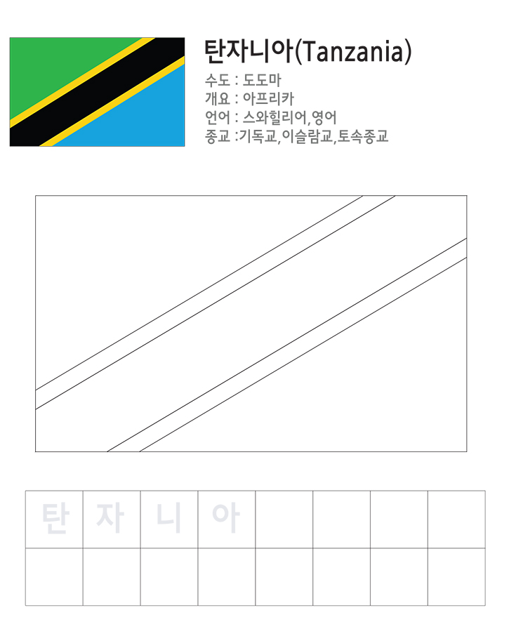 탄자니아에 대해 알아보고 예쁘게 색칠해 보세요.